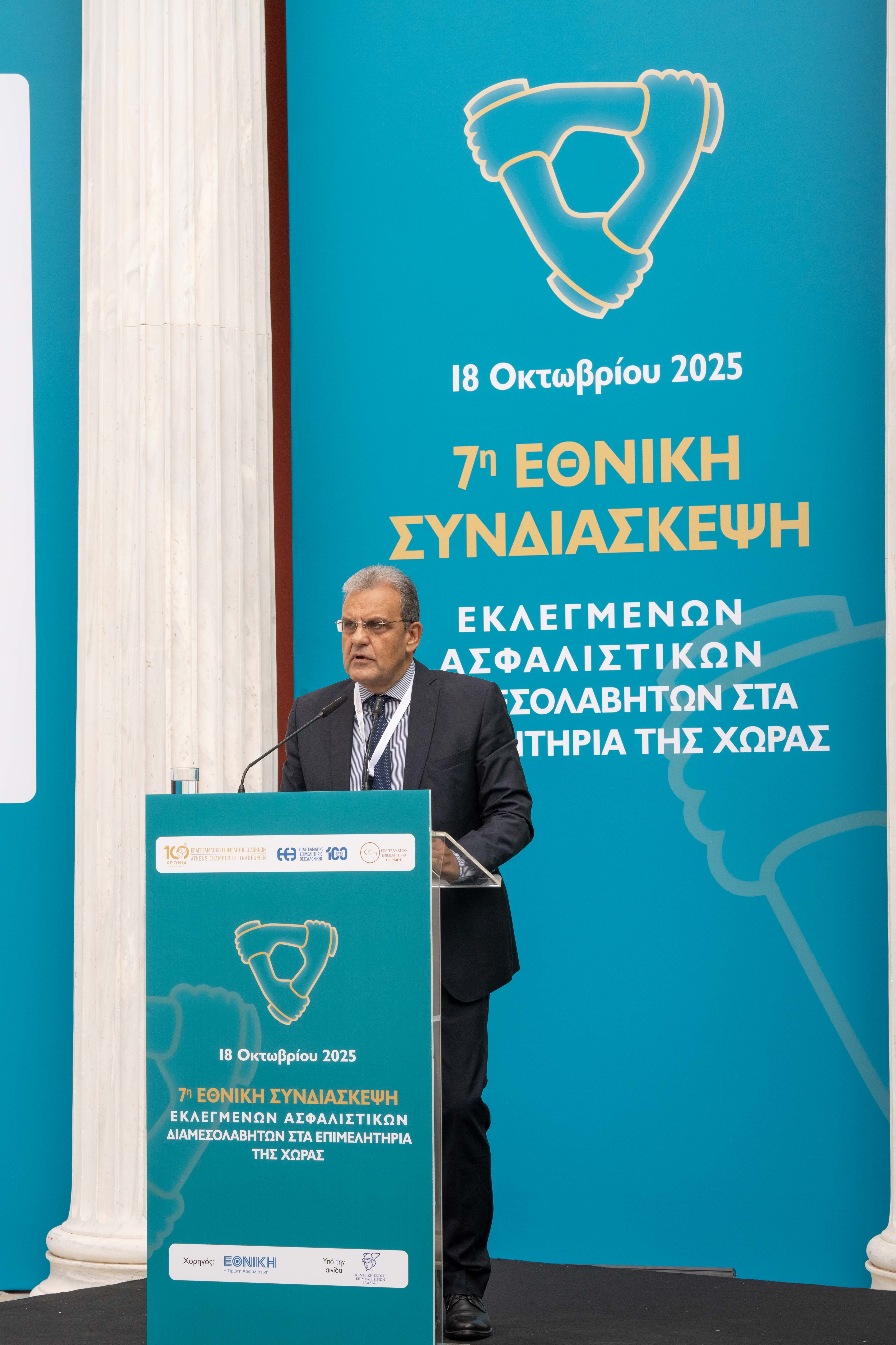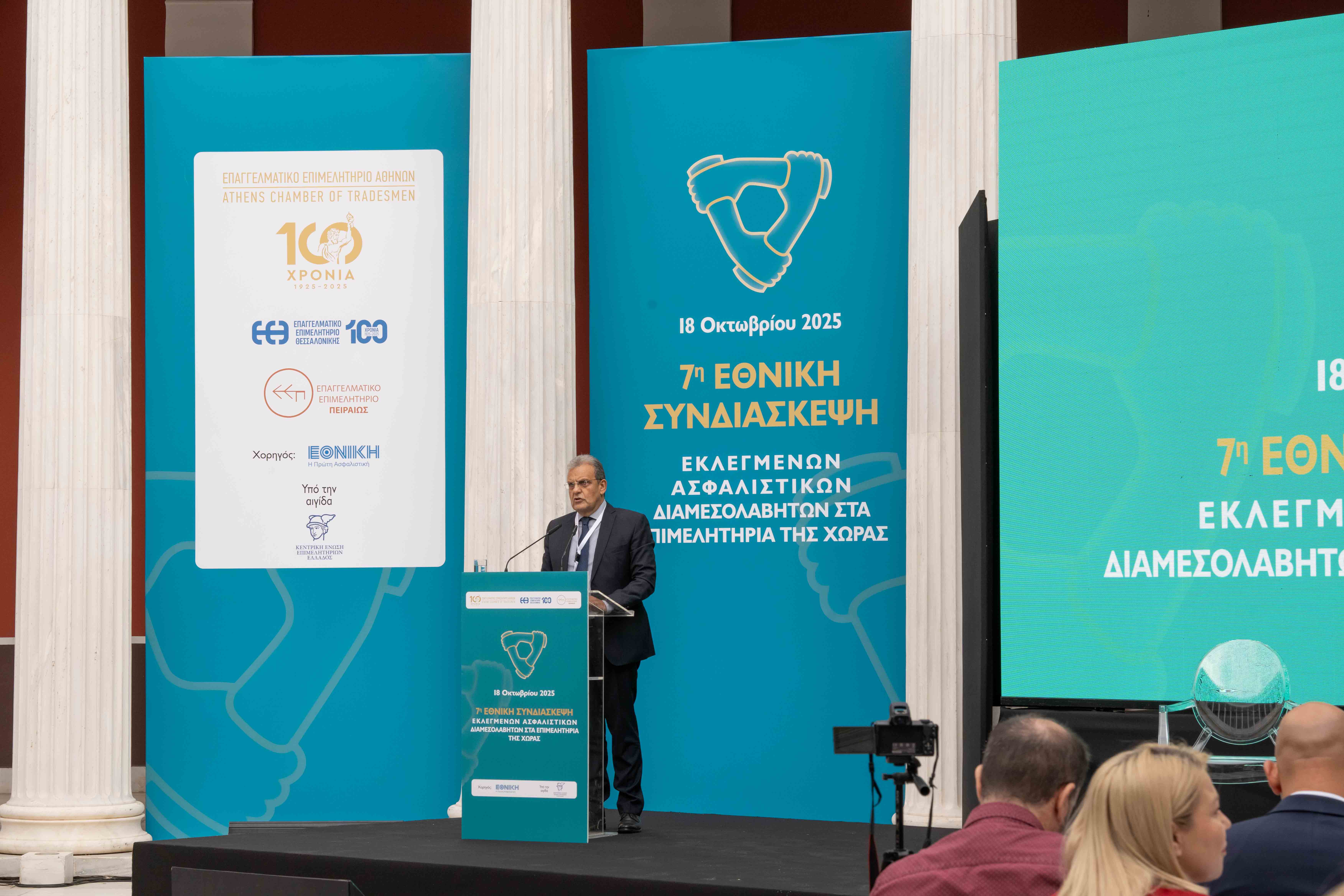Σε μια εκδήλωση - θεσμό για την ασφαλιστική διαμεσολάβηση, την «7η Εθνική Συνδιάσκεψη Εκλεγμένων Ασφαλιστικών Διαμεσολαβητών στα Επιμελητήρια της χώρας», παρέστη και απηύθυνε χαιρετισμό ως εκπρόσωπος της ΚΕΕΕ, ο Πρόεδρος του Επιμελητηρίου Αργολίδας και Αντιπρόεδρος της Κεντρικής Ένωσης Επιμελητηρίων Ελλάδος (ΚΕΕΕ) κ. Φώτιος Δαμούλος, το Σάββατο 18 Οκτωβρίου 2025, στο Ζάππειο Μέγαρο, στην Αθήνα.