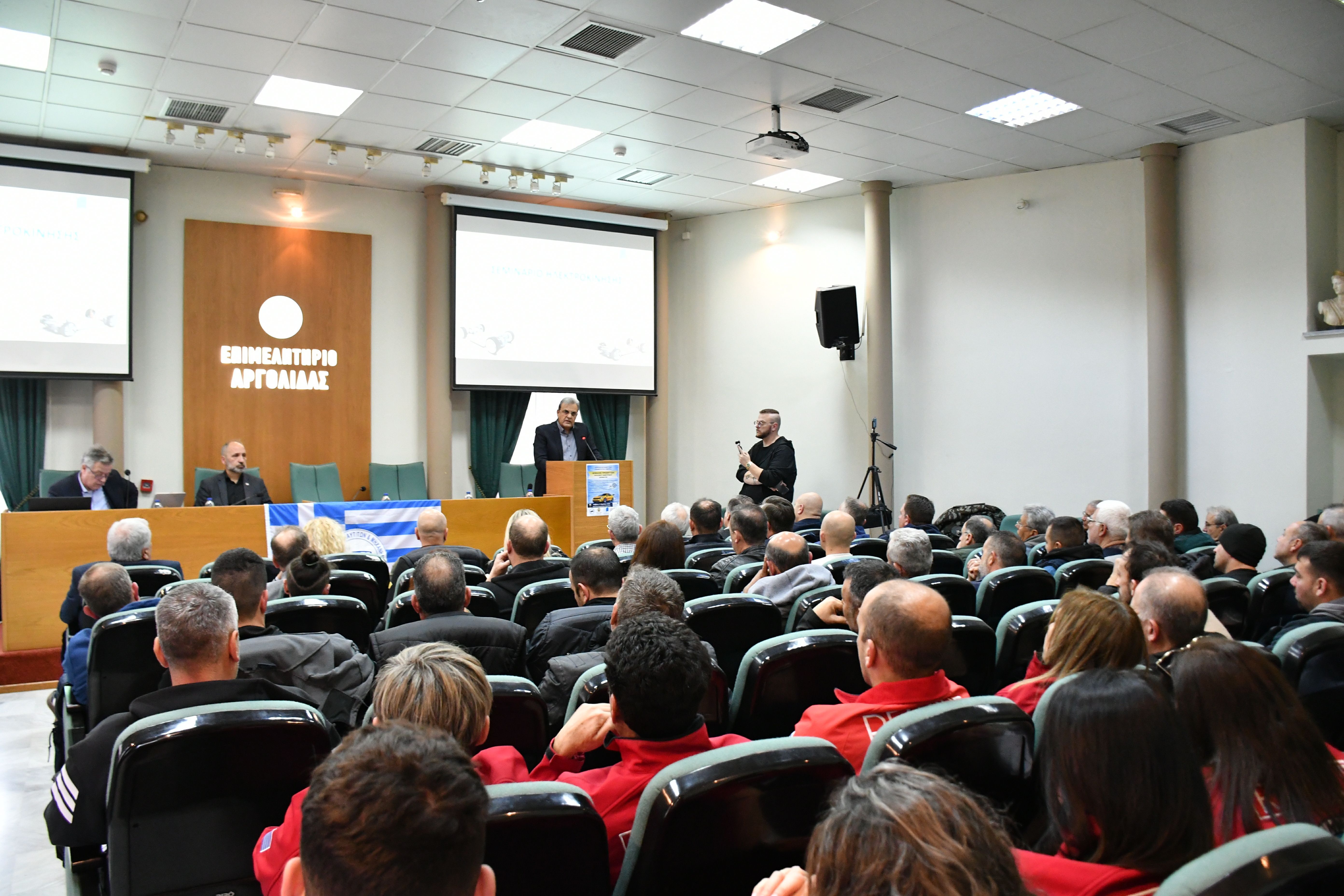 Με εντυπωσιακή συμμετοχή πραγματοποιήθηκε το Σάββατο 4 Απριλίου 2026, στην αίθουσα συνεδριάσεων του Επιμελητηρίου Αργολίδας η καινοτόμα ημερίδα με θέμα την Ασφαλή Προσέγγιση και Διαχείριση σε τροχαία ατυχήματα ηλεκτρικών αυτοκινήτων .